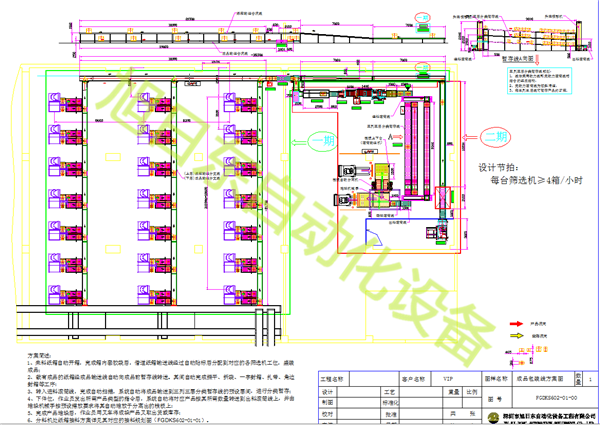 此方案為車間內(nèi)21臺生產(chǎn)設(shè)備只需要1人看管,1人放紙箱及轉(zhuǎn)運碼好垛的成品成品即可,由以前的15人減少到了兩人,極大的節(jié)省了人工成本。本方案實現(xiàn)了紙箱自動開箱封底、自動箱內(nèi)套袋、空箱按機臺要箱指令自動貼標(biāo)、自動送至指定機臺。裝好產(chǎn)品...